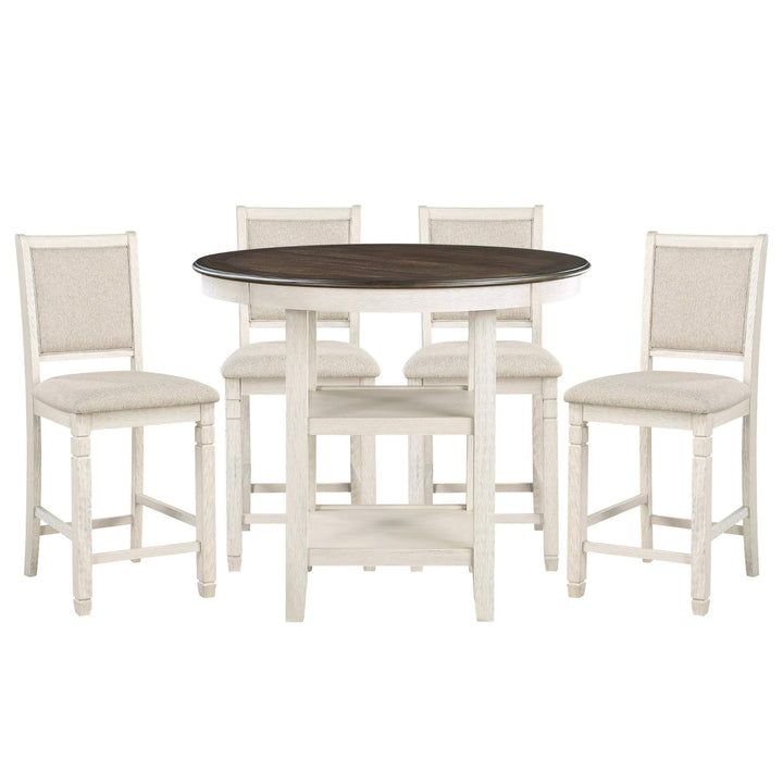 Asher White Round 5 Piece Counter Height Dining Set